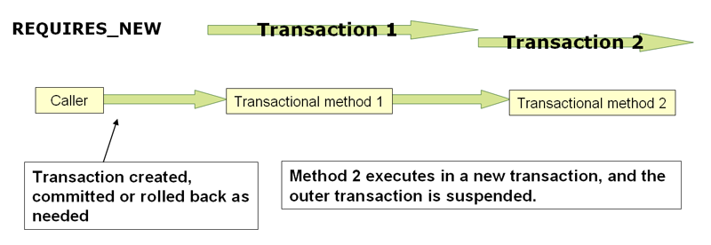 - 전파: 일반적으로 트랜잭션 범위 내의 모든 코드는 해당 트랜잭션에서 실행됩니다. 그러나 트랜잭션 컨텍스트가 이미 존재할 때 트랜잭션 메서드가 실행되는 경우 동작을 지정할 수 있습니다. 예를 들어, 기존 트랜잭션에서 코드가 계속 실행되거나(일반적인 경우), 기존 트랜잭션이 일시 중단되고 새 트랜잭션이 생성될 수 있습니다. Spring은 EJB CMT에서 익숙한 모든 트랜잭션 전파 옵션을 제공합니다. Spring에서 트랜잭션 전파의 의미에 대해 알아보려면 트랜잭션 전파를 참조하세요.